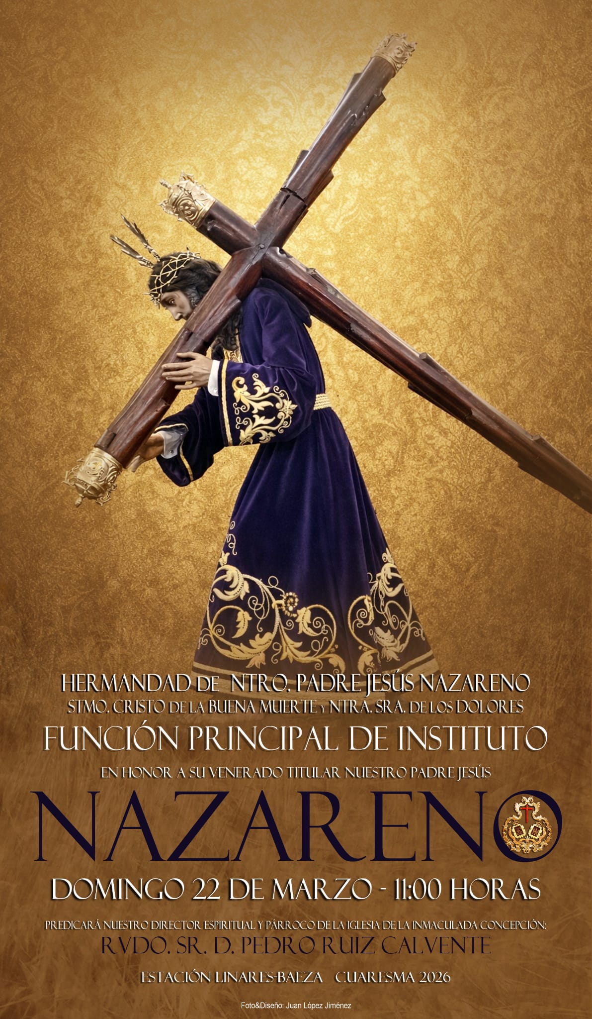 La Estación Linares-Baeza acogerá este próximo domingo, 22 de marzo, a las 11:00 horas, la celebración de la Función Principal de Instituto en honor a Nuestro Padre Jesús Nazareno, uno de los titulares de mayor devoción en la zona.